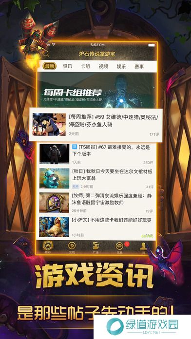 2、在这里你可以实时了解国内外一手资讯、学习探讨原创卡组攻略、关注国内外重大赛事报道。