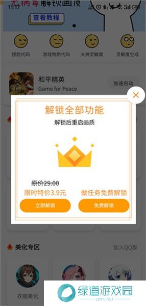 2、点击画质修改,玩家们可使用解锁16:9画质、解锁超高清。
