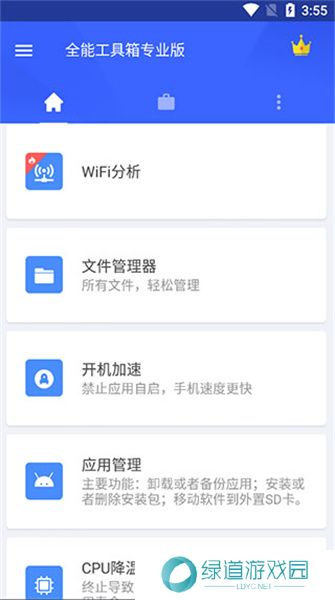 全能工具箱是一款提供手机文件管理、系统优化为主要功能的工具类软件。软件具有文件管理器、开启加速、cpu降温、wifi分析等不同的功能。使用文件管理器的功能,用户可以清晰方便查看自己手机中的文件,包括各种应用软件的安装包等内容,从而可以让用户方便管理自己手机中的文件。而系统优化的功能,帮助用户清理手机的内存,从而使得cpu降温,解决了手机的卡顿。
