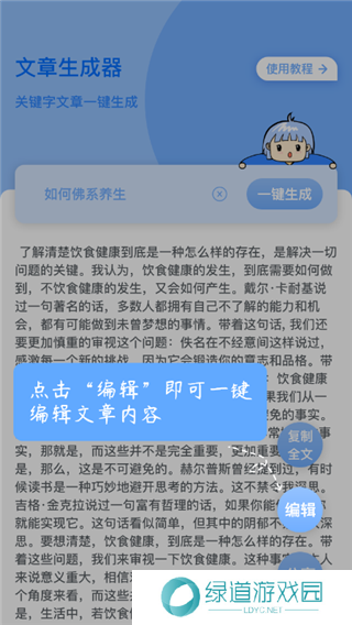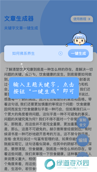 文章生成器免费版app是一款专为用户们打造的文章生成器工具,在该工具中只需要输入一个关键词信息,就可以一键的进行生成文章内容,所生成的内容都是绝对原创的,能够帮助创作者们创作出文章或者是帮助自己从中寻找到灵感。在使用过程中用户们还可以进行设置批量生成的操作,能够同时的进行生成多个的原创文章,以便你能够从中去选择。