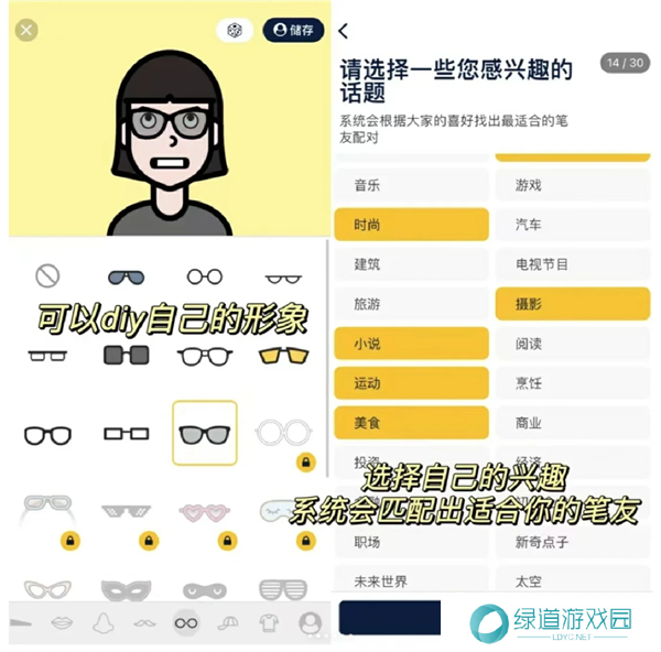 编辑虚拟头像(捏脸)/写简介(你的爱好、想交怎样的笔友…)/基本信息/感兴趣的话题/语言/配对设置(可以排除不感兴趣的话题和国家,也有年龄段的选择)。