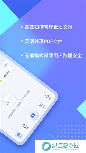 1、拍照或相册导入图片、自动抠边、自动矫正文档、生成高清电子件。