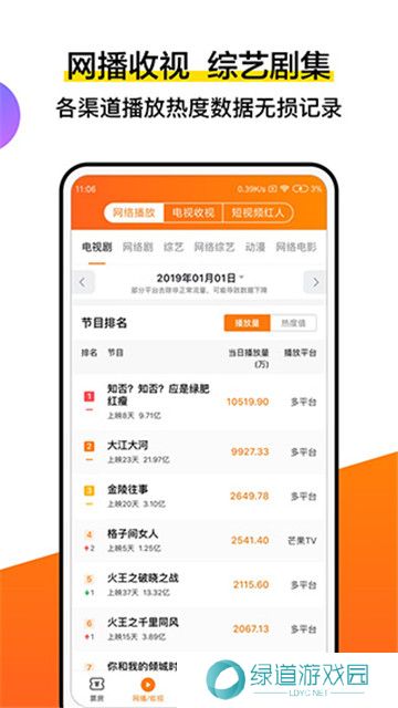 3、电视剧、网剧、综艺、动漫播放量及收视率每日更新,了解用户跨屏内容消费趋势。