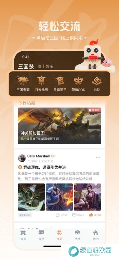 三国咸话可以说是三国杀玩家们必备的一个游戏社区,准备了攻略、资讯、社区等多个游戏功能板块,不止可以看到三国杀最近推出的新武将,还能看到未来三国杀的限定活动,将来的玩法也能先人一步看到。一个集桌游和社交于一体的app,在与三国杀爱好者们分享话题的同时还能玩游戏,边玩边聊更有趣,打造一个更舒适的游戏话题社区。