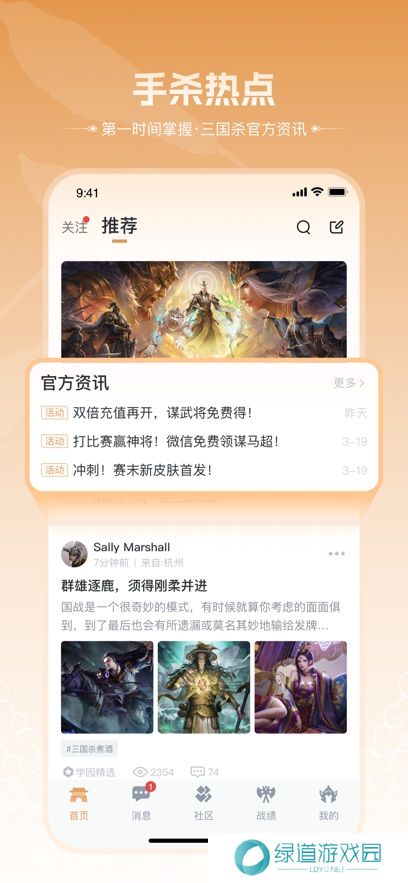 1、三国杀移动版社区的攻略、赛事以及福利,还有同步数据的游戏战绩对局系统。