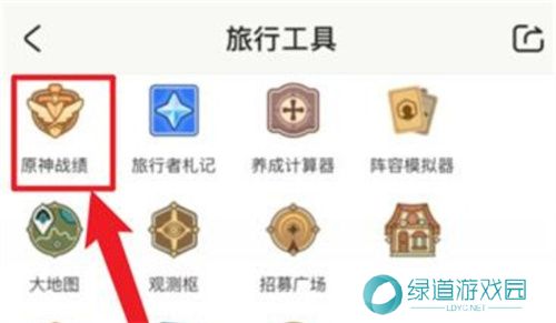 3、最后,在旅行工具列表中点击“原神战绩”,即可查看原神抽卡记录。