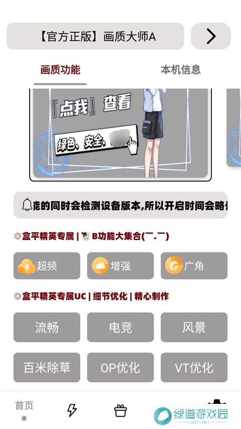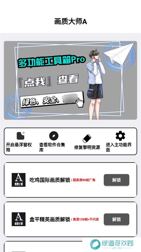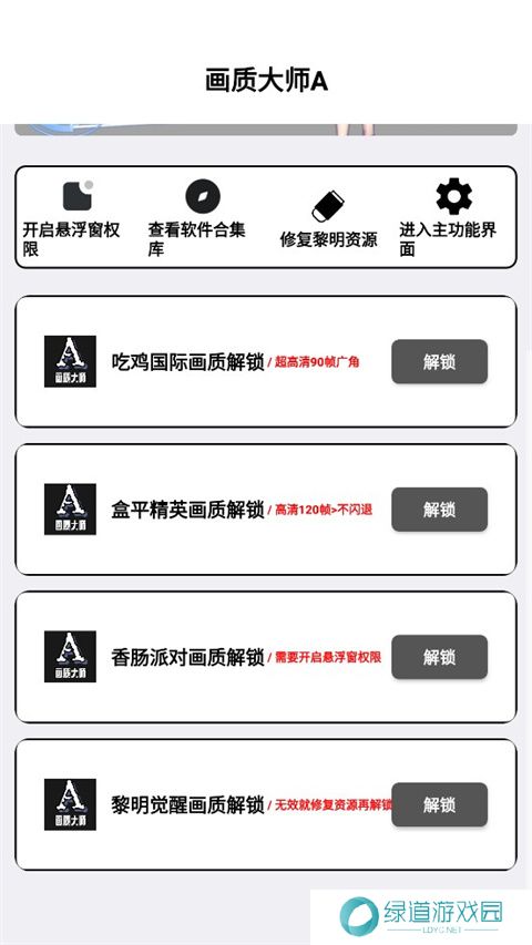 画质大师A是一款无需做任务的画质助手,玩家们在这里登录后即可随时进行使用,并且所有功能都是永久免费的。该应用支持多个游戏,如和平精英、香肠派对等,可以帮助你一键解锁超高120帧率的画质,并提供音质调整功能。