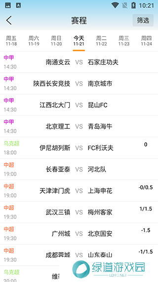 2、点击赛程可以按日期查看最新的相关比赛信息,包括国内外的各**赛信息。