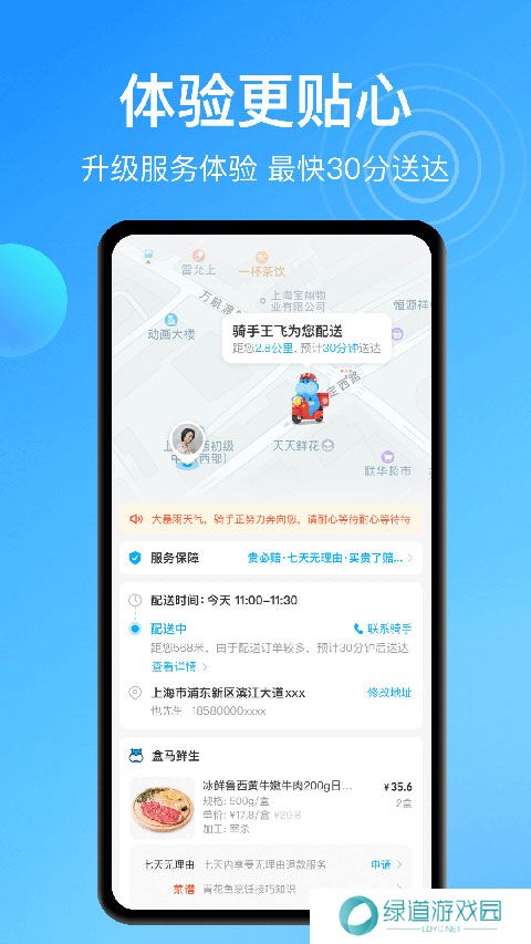 2、下单后最快30分钟急速送达,省去外出买菜、翘首等外卖的麻烦,配送够快才够新鲜。