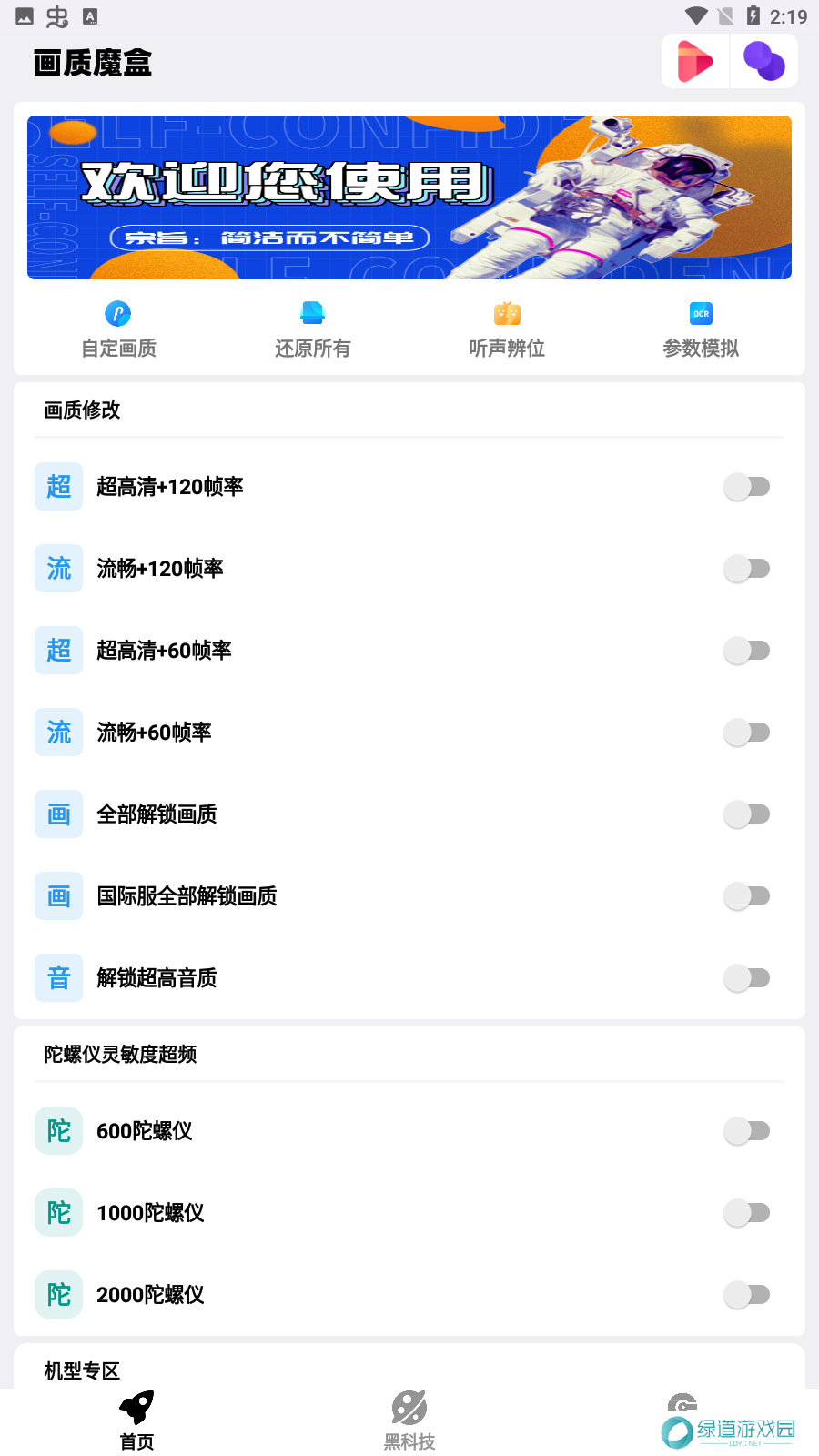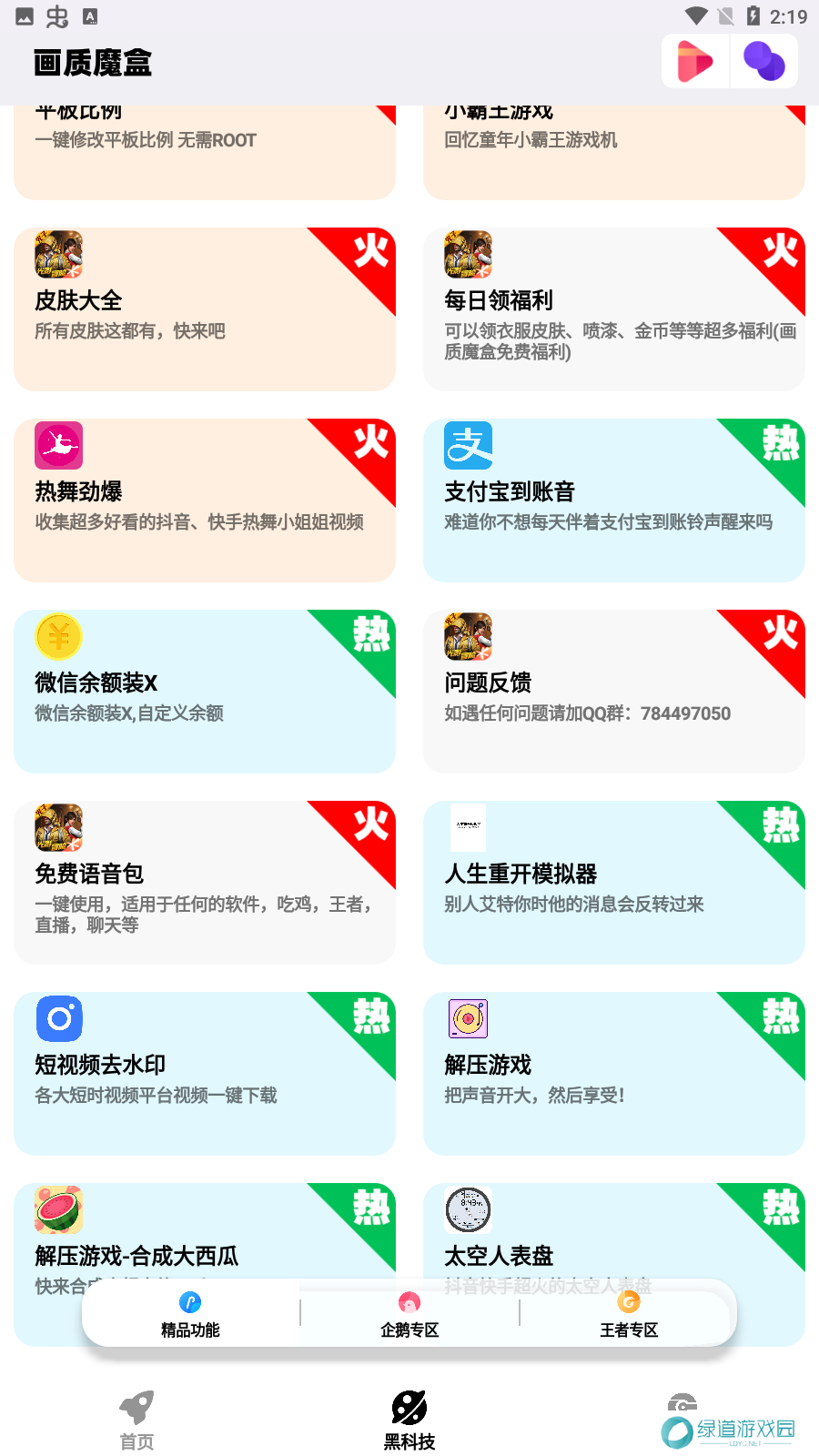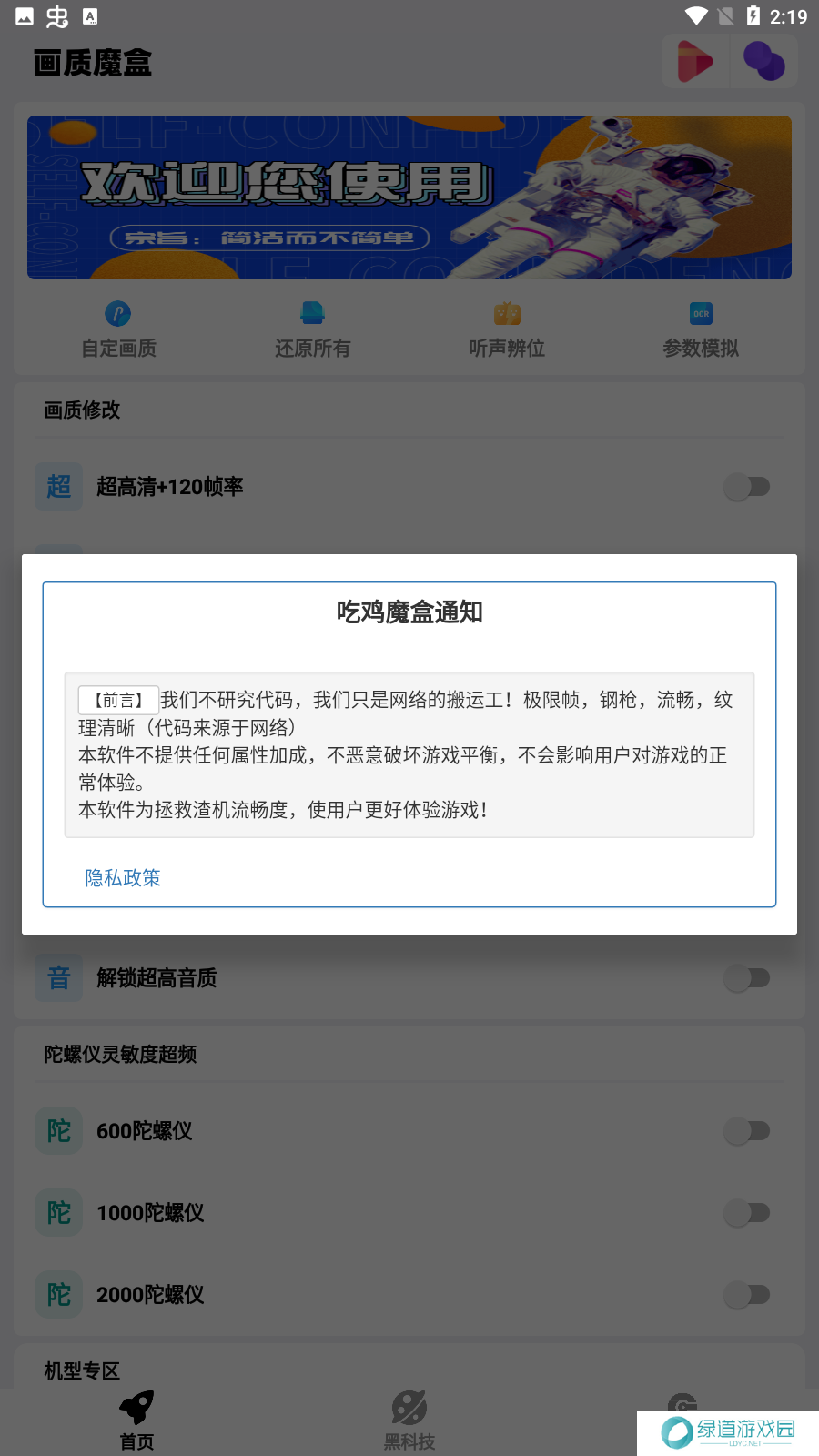 2、和平精英大视野、捏脸代码、听声辩位、大神灵敏度等超多黑科技功能免费更新