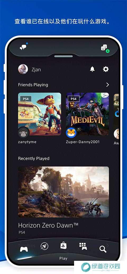 2、在好友列表中看看好友正在玩什么游戏,还可以便捷地存取近期玩过游戏的奖杯列表等信息。