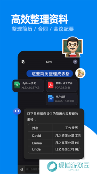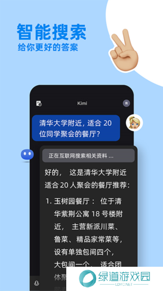 kimichat是一款AI智能助手软件,集智能搜索、高效阅读、文件解读等多种功能于一体,还能为你解答平时工作或生活中遇到的种种难题。依托Kimi自己研发的机器学习算法,在必要时刻Kimi会像人一样主动从互联网中整理相关的回答,并从网页中提取内容关键点,一针见血的直达问题核心,资料整理不再繁琐。