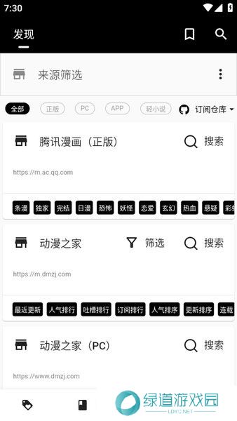 5、等待订阅成功,“发现”中出现众多漫画平台。