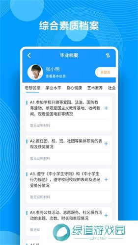 综合素质评价app是一款以倡导学生全方位成长的综合服务平台,等级评价的方式让教师为学生进行点评,并纪录学生的成长过程。软件不再以唯分数论为主要划分手段,从思想品德、学业水平、身心健康、艺术素养、社会实践五大维度全方位测评学生,大幅度推进学生广大素质教育。其各方面的评价均以特定条件为标准,为高校招生提供参考。