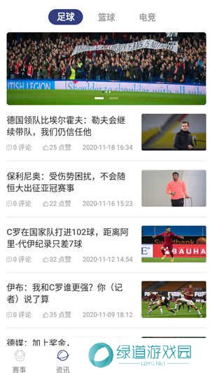 3、点开资讯,可以查看关注足球、篮球、电竞等赛事的体育新闻;