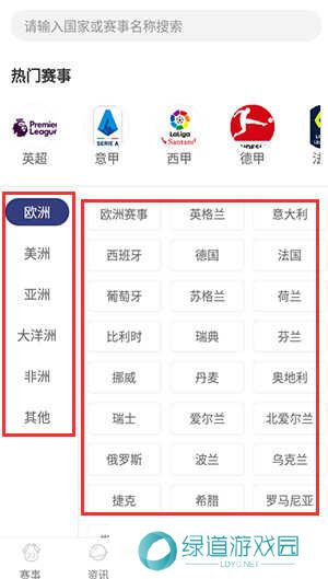 5、点开数据,有欧洲、美洲、亚洲、大洋洲、非洲等各种地区的赛事直播内容。