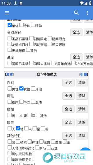 4、勾选完成后下拉到应用最底部,就能看到对应标签的英灵。