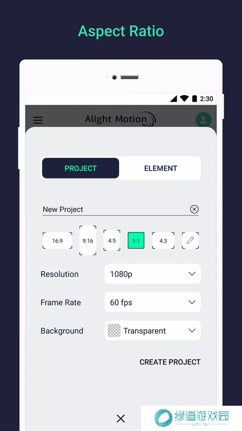 2、然后我们选择创建一个项目,设置项目名称、宽高比例、分辨率、帧速率、背景颜色。