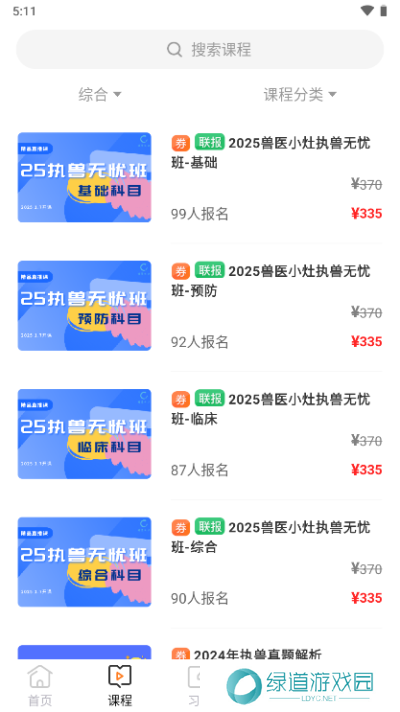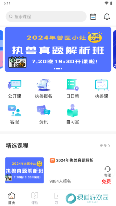 1、进入兽医小灶App,在搜索栏输入课程名进行搜索。