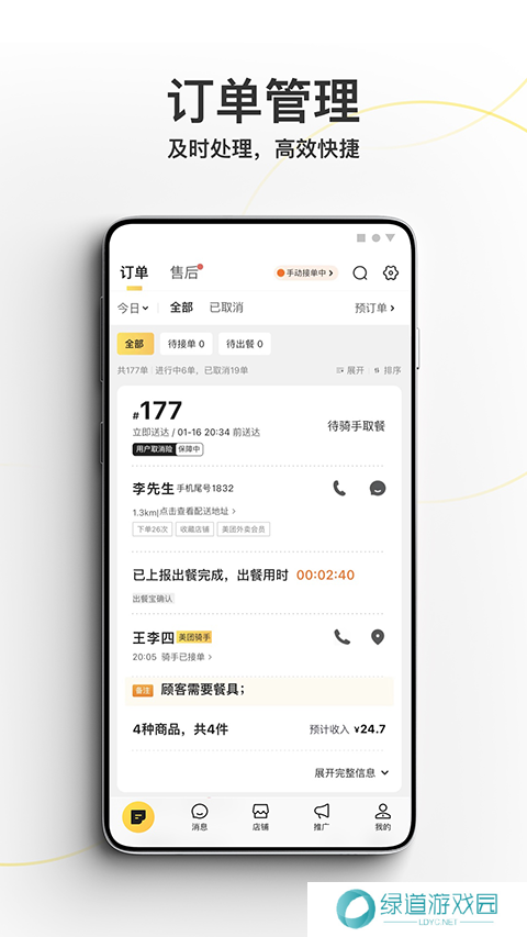3、从外卖订单处理到退款,从在线结算到门店管理,各种功能一应俱全,助力商家提高经营效率。