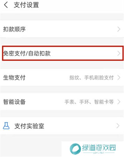 3、点击支付设置,点击免密支付/自动扣款。