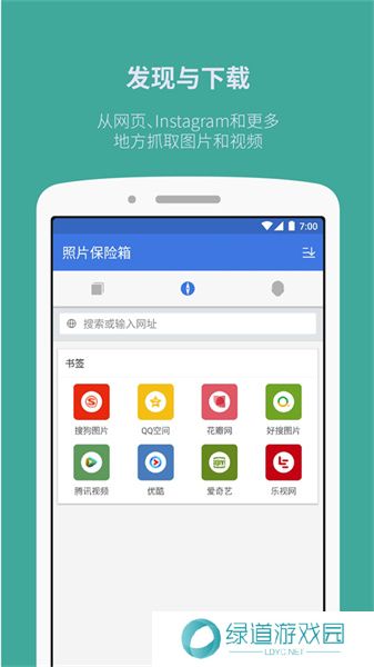 照片保险箱是一款提供图片下载、照片保险功能的图片类型辅助软件。软件有内置的浏览器功能,用户可以通过在搜索框中输入关键词,从而通过各种图片网站的资源,来找到自己需要的图片。你也可以将自己手机中的图片导入到照片保险箱中,自己来建立不同分类的文件夹,并且设定密码。如果需要查看这些图片,就需要输入密码才可以进入,从而有效保护你的图片的安全隐私。
