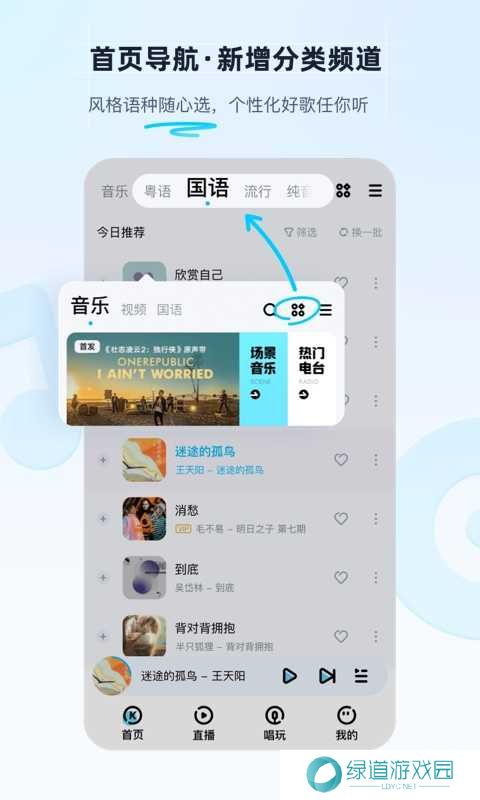 耳目一新的乐库,新歌速递、权威榜单,精选歌单,你要找的音乐,都在酷狗曲库