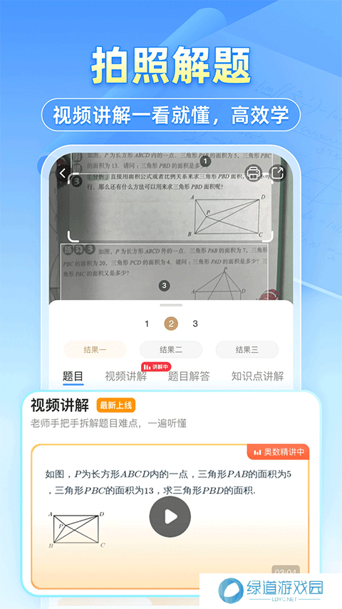 3、名师讲题:一线名师,真人板书讲解解题思路,哪道不会拍哪道,老师讲哪道。