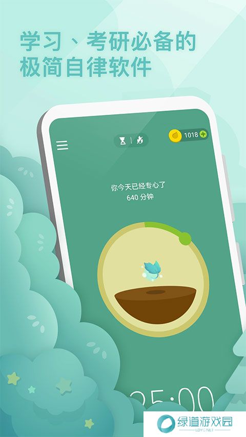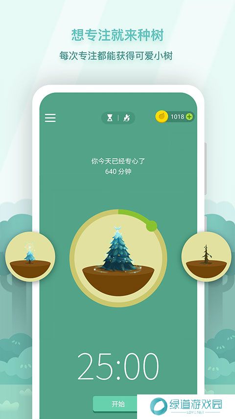 1、伴随着画面中生长的小树,成就感以及责任感将会帮助您暂时离开您的手机。