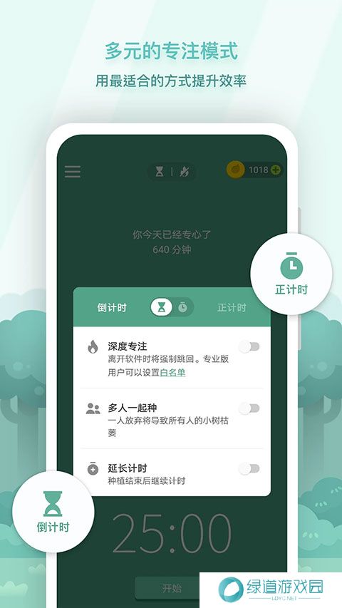 2、专注完成当前首要任务为初衷,通过种树小游戏来创造性地监督不碰手机。