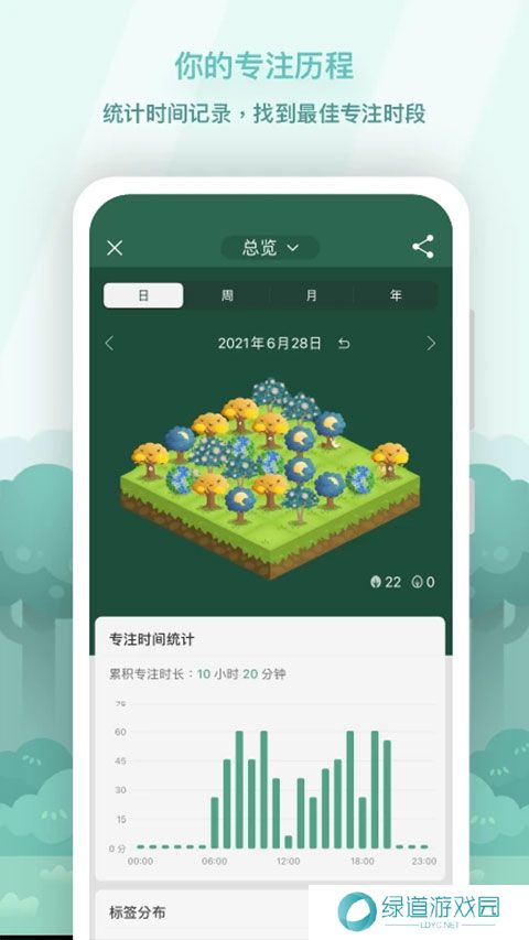 1、以森林记录每一天的专注情形,看看昨天您多麽努力,而今天是否有所进步。