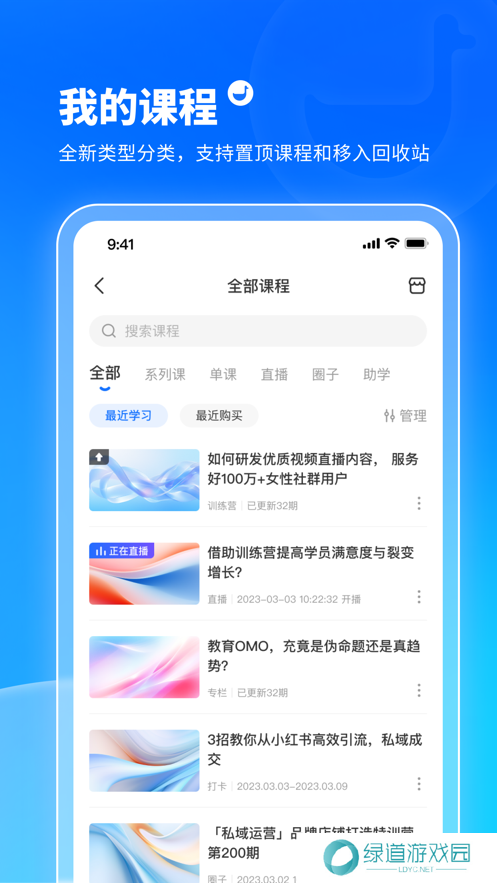 小鹅通学员版app当中的课程都是根据发布时间进行持续更新的,所更新的课程都会按照自己的学习喜好进行相关的整理,只需要在首页中选择分类就可以直接启动学习。