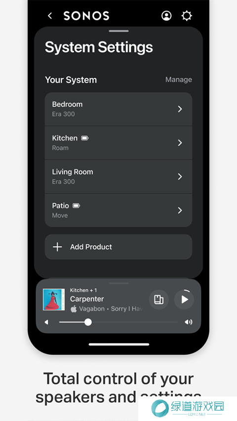 1、需要链接音响、条形音响、组件等配套使用,轻松控制家庭中的Sonos音箱。