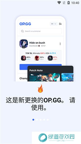 OPGG中文版app是一款主要为英雄联盟玩家打造的游戏辅助平台,玩家可轻松查询各种游戏信息。在登陆拳头账号后查看胜率、KDA、MVP数等信息,确保能够对自身的游戏状况进行一定程度的总结。玩家们从中进行查看不同区服的英雄强度与出场率时,可以实现第一时间进行知晓下个版本的英雄与装备调整。在OPGG中文版当中更有大神分享版本上分答案,通过查看能够帮助玩家们进行提升自己的游戏段位和理解,其中文界面让玩家们无须去担心看不懂的问题。
