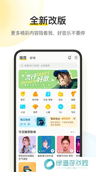 酷我音乐永久免费2025是一款优质音乐播放器,它不仅有着庞大的音乐曲库,而且所有的音乐资源均可以免费播放,再搭配上顶级音效设置器,让你能够沉浸在精彩的旋律之中。酷我音乐还可以根据你的心情播放不同风格的歌曲,为歌迷们提供最贴心的歌曲搜索体验。除此之外,酷我音乐还具有个性换肤、超炫语音搜索和精准音频指纹识别等独特功能,可以把百万首歌曲专辑装进口袋,随时随地想听就听。