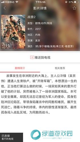 1、手机直接点播电影、电视剧节目,推送到电视播放,同时还提供推荐、专题、筛选等功能。