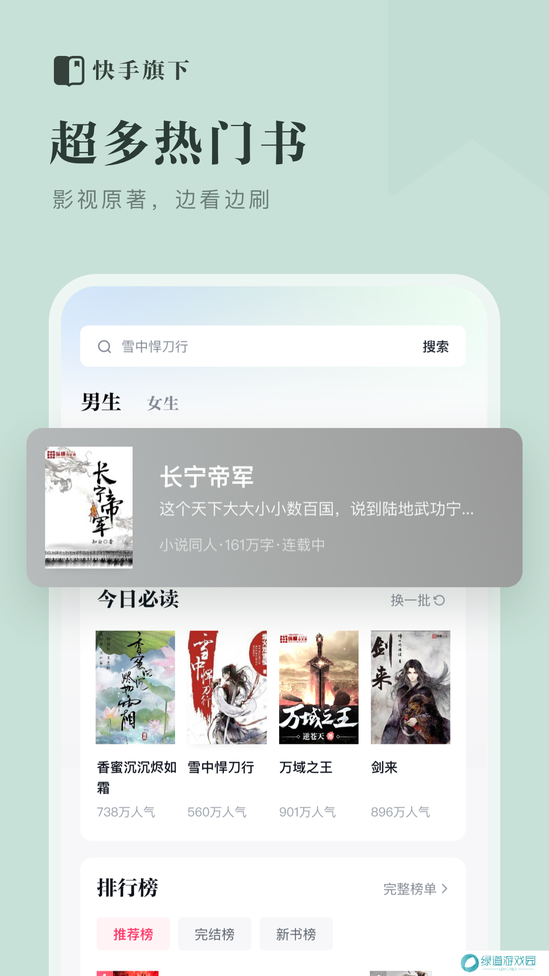 3、排行榜,快手免费小说小说内容精彩不断,小说资源都是正版优质内容。