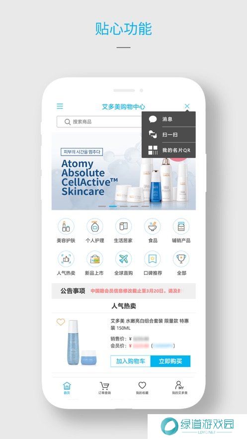 1、浏览艾多美中国所有产品、产品下单、产品收藏、搜索产品、购物车等功能。