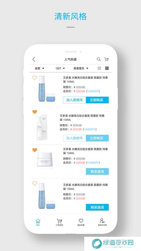 3、同时提供了产品收藏、订单查询等功能,购买产品、查询订单,了解热卖新品。