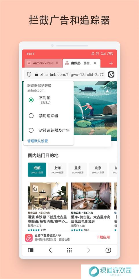 vivaldi是为安卓手机打造的一个手机浏览器软件,也是国外一个高度可以自定义的浏览器软件,广告拦截器、反跟踪器、私密翻译器等浏览器插件都可以免费使用,打造一个纯净的手机上网环境。vivaldi自带笔记本功能,对于作者、上班族们来说,平时上网查资料的时候可以将需要的段落保存在手机中,笔记可以同步到其他已登录账号的浏览器上,实现跨设备同步数据。