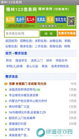 1、网站开通多种栏目,包括便民信息、锡林美景、锡林Q群发布系统等,提供各类便捷服务信息。