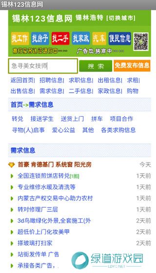 锡林123信息网是一款面向锡林本地居民打造的一个生活服务平台,在这里你可以自由发布或查询各类信息,包括找工作、租房、二手物品、家政服务、车辆信息等等,满足所有锡林人的日常需求。作为锡林人最常用的社区论坛,根据自己的兴趣选择不同的生活版块,随时在线分享、交流和互动,了解锡林最详细的信息动态。提供在线求职功能,可以自由浏览最新招聘信息,提供更多的就业机会和选择,轻松在锡林找到理想的工作。