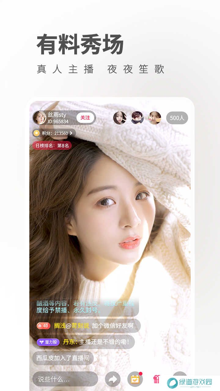 3、平台整晚都有精彩有趣的直播内容,让更多人有机会扩大朋友圈。