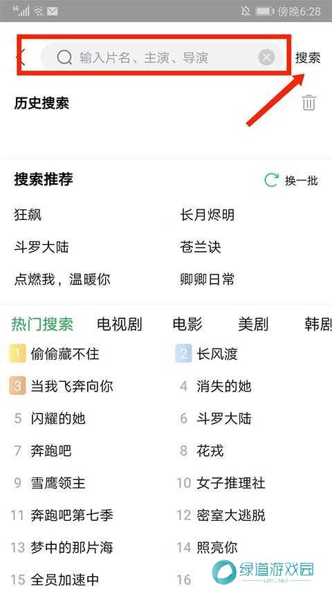 3、进入搜索界面,在输入框输入要搜索的片名、主演、导演后,点击【搜索】选项;