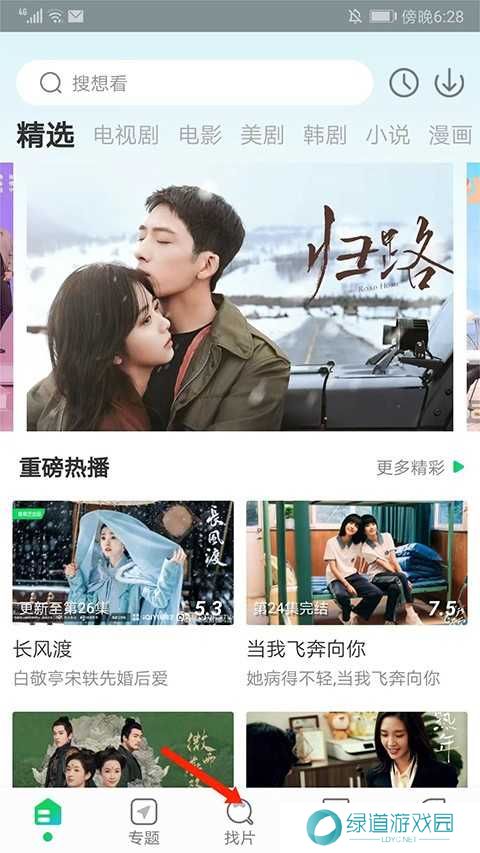 ,进入应用主界面,选择下方【找片】选项;