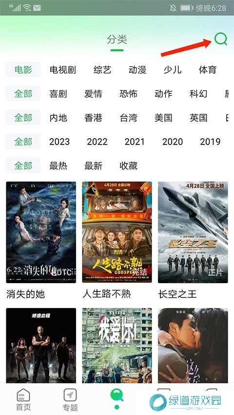 2、进入找片界面,选择右上角【放大镜】图标即可开始搜索;