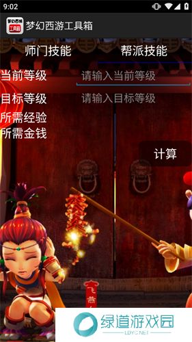 3、技能计算中与上述角色等级升级计算器用法相同,在输入栏中提供当前等级以及目标等级提交计算,一键得出所需的经验、金钱。