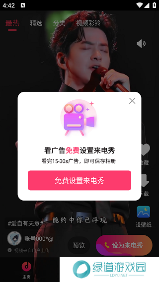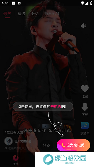 【每日更新】每日上新,一键制作属于自己的个性来电桌面。【海量主题 】收集了全网最热最火的短视频,明星、美女、网红、搞笑、动漫、、萌宠...海量来电视频任你挑选,一键设置,轻松搞定。【热门来电铃声】时下最火最热的歌曲铃声任你更换,设置自己专属的个性来电铃声。【智能搜索 】快速搜索你想要的来电视频、主题,精准定位,方便快捷。【模拟微信来电】模拟微信视频通话和语音通话,精选N种场景视频语音,助你友善脱身;【抖音热榜】流行视频与热门音乐完美结合,秀出您的个性【3D/4K超高清画质 】酷炫3D动画、超超清4K视频,手机屏幕差谨入。