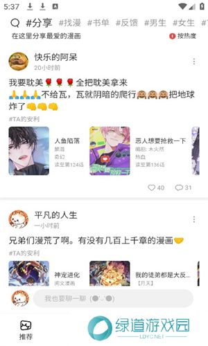 3、内置漫画社交功能,方便大家分享、交流漫画感想,让漫画阅读更加轻松。