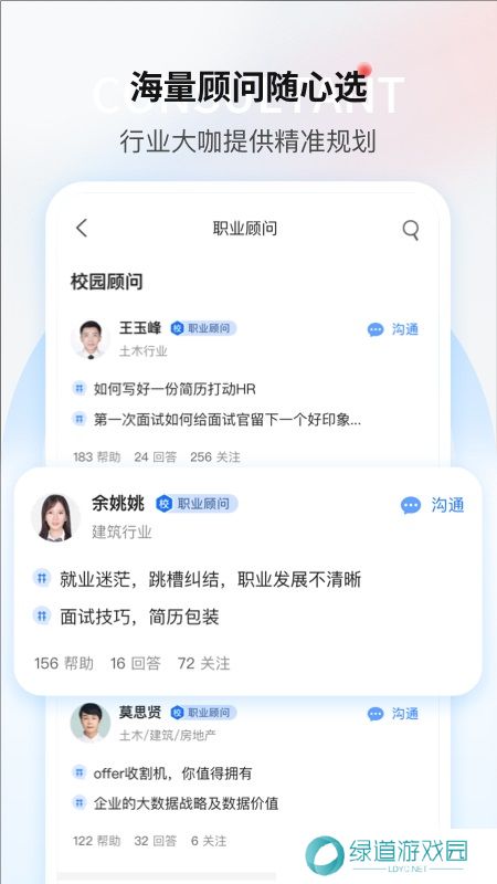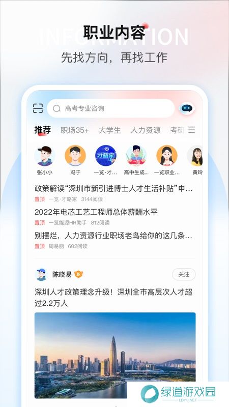 1、职场发展前景资讯,业大咖分享、最新职场讯息、专业的职位晋升问答交流。